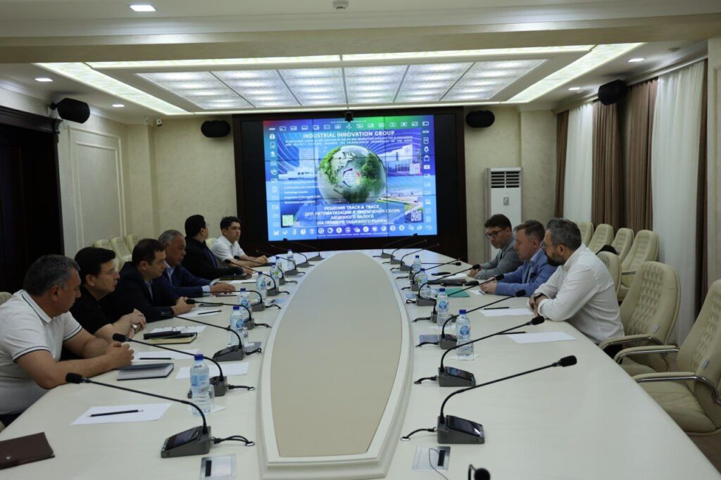Uchrashuvda “Industrial Innovation Group” kompaniyasining aksiz markalarni qalbakilashtirishga chek qo‘yish maqsadida, uning himoya darajasini oshirish usullari hamda aksiz markalar hisobi va harakatini kuzatish imkonini beruvchi “TRACK & TRACE” axborot tizimi bo‘yicha taqdimoti bilan tanishildi.
